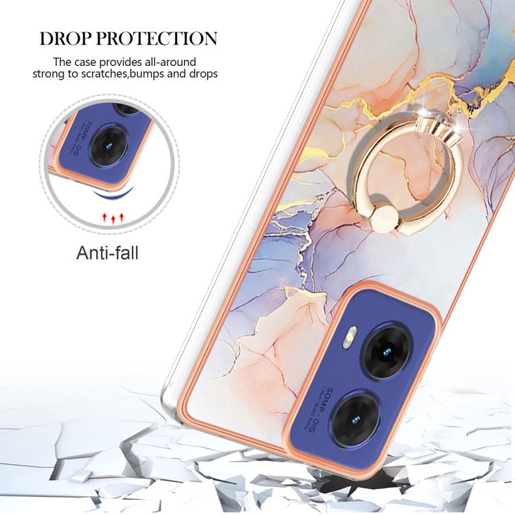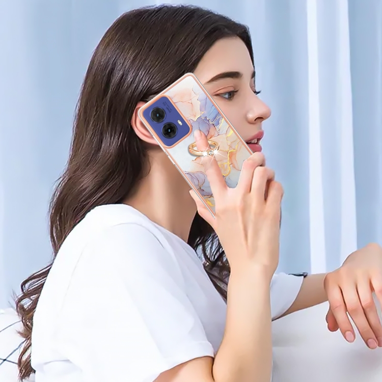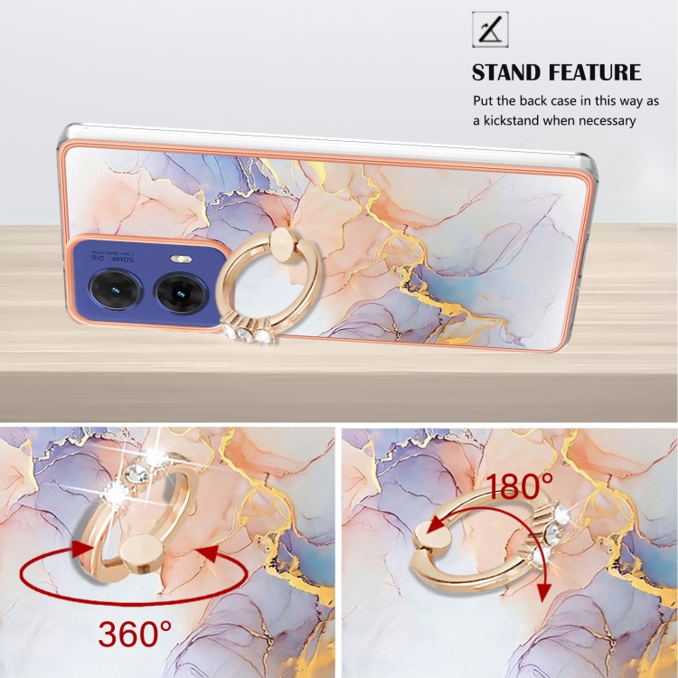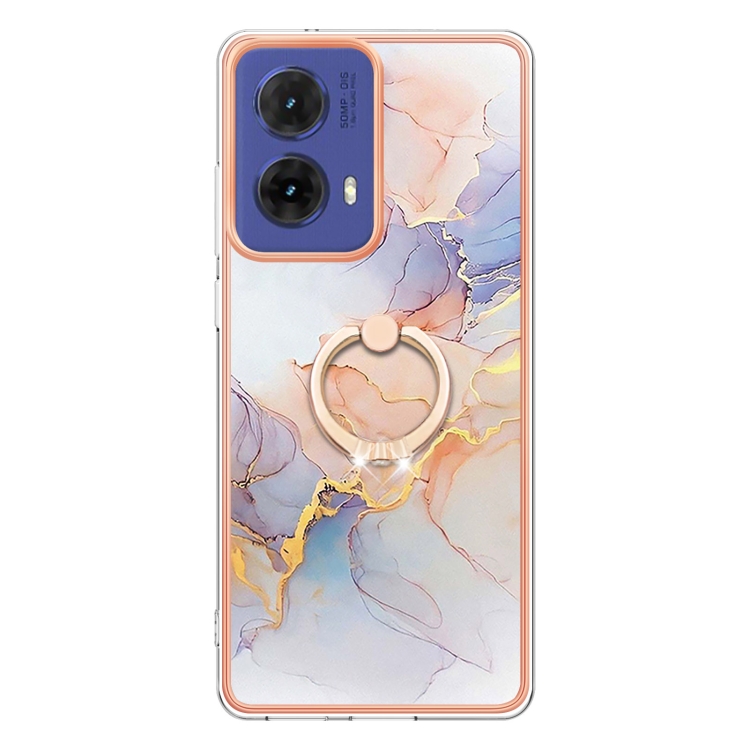 Funda TPU con Soporte Anillo Diamantes Motorola Moto G85 (Mármol Blanco Vía Láctea)
