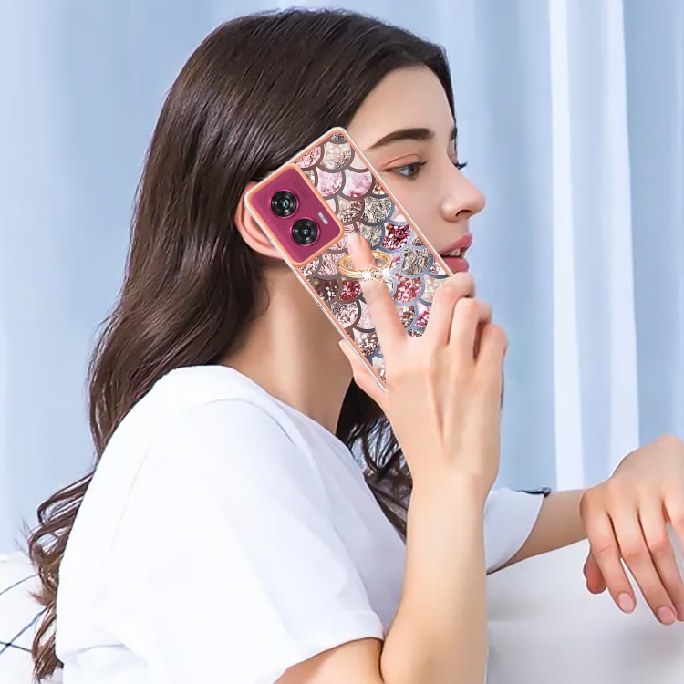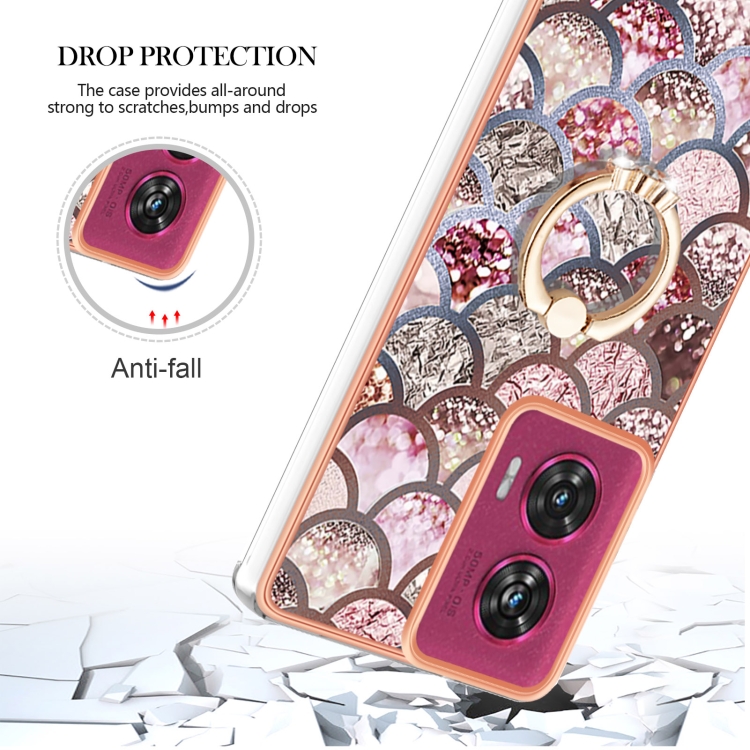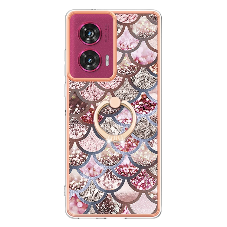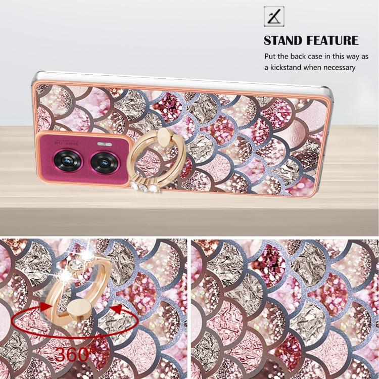 Funda TPU con Patrón Galvanoplastia y Soporte Anillo para Motorola Edge 50 Fusion (Escamas Rosas)