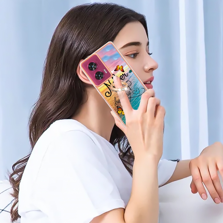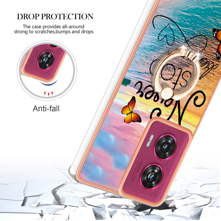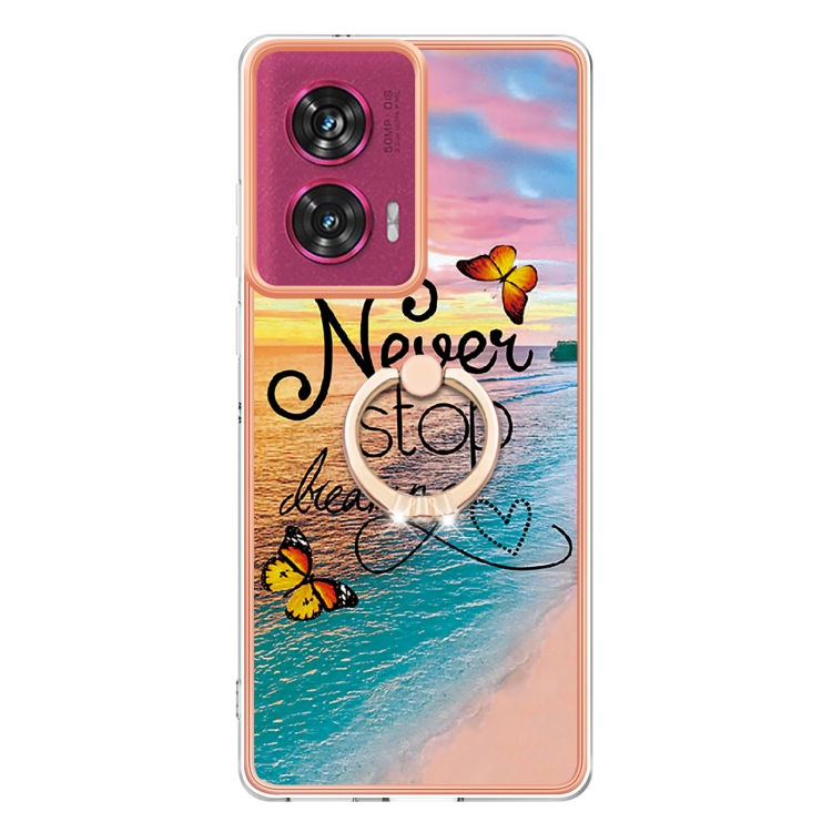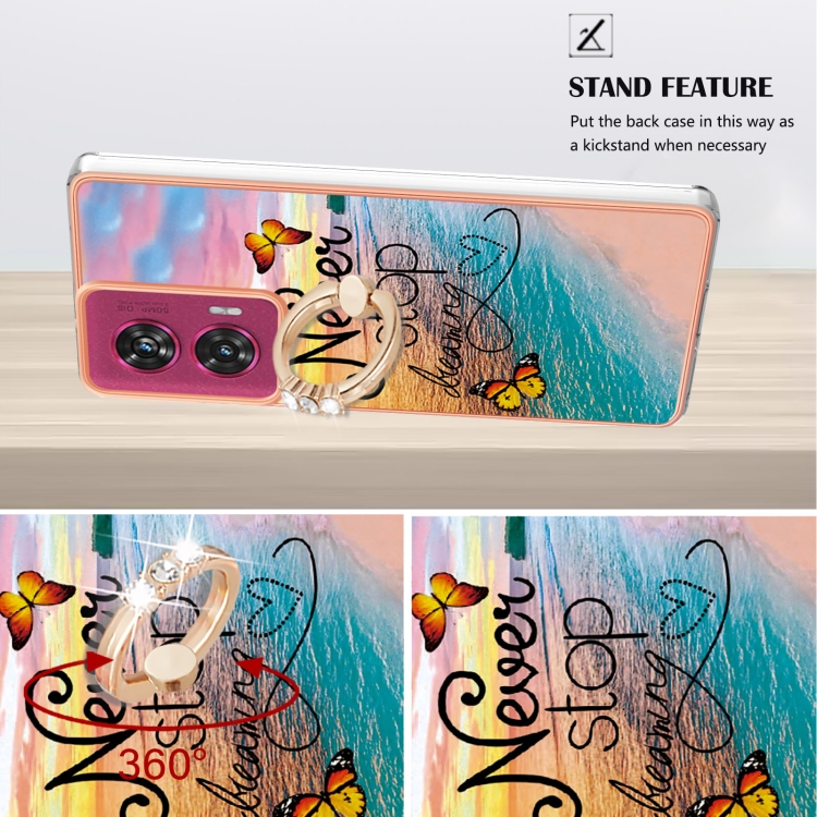 Funda TPU con Patrón Galvanoplastia y Soporte Anillo para Motorola Edge 50 Fusion (Mariposa Persiguiendo Sueños)
