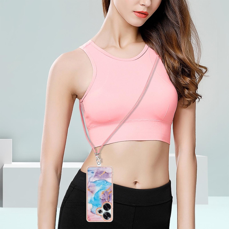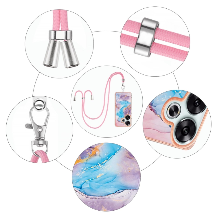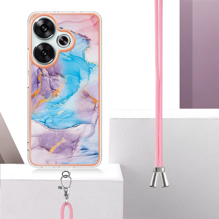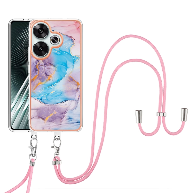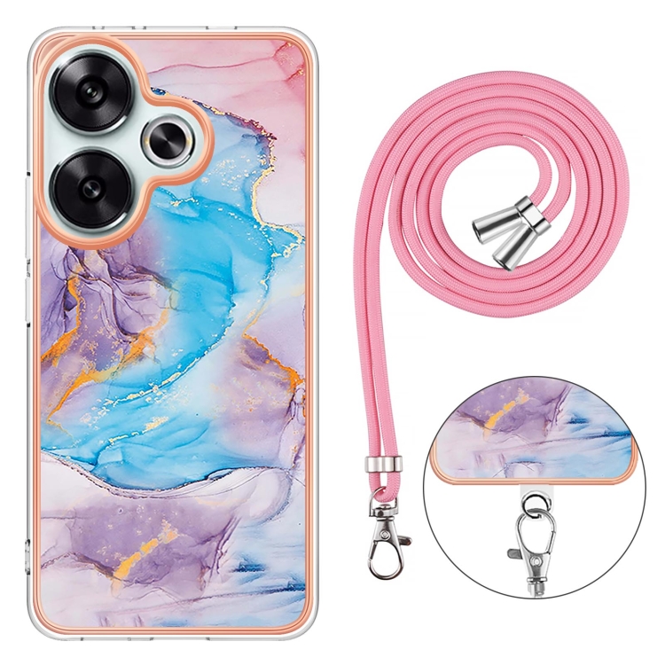 Funda a Prueba de Golpes con Patrón de Galvanoplastia Imd TPU para Xiaomi Poco F6 5G con Cordón para El Cuello (Mármol Azul Vía Láctea)