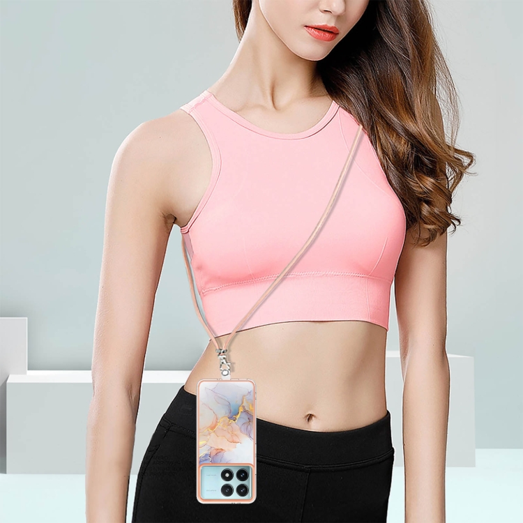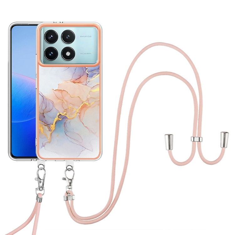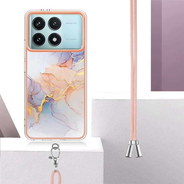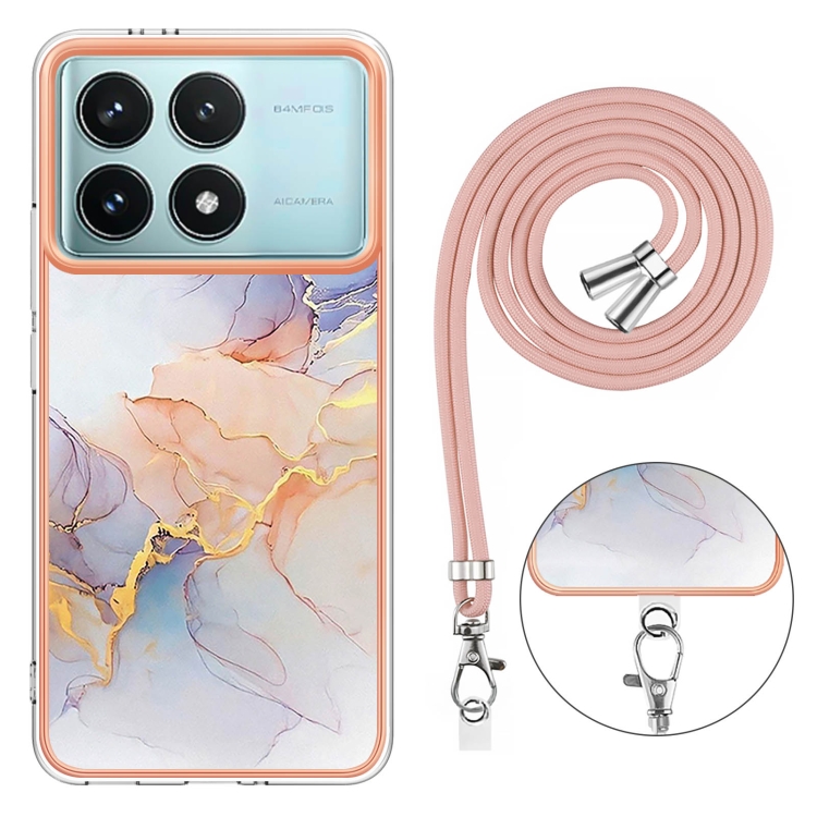 Funda a Prueba de Golpes con Patrón de Galvanoplastia Imd TPU para Xiaomi Poco F6 Pro 5G con Cordón para El Cuello (Mármol Blanco Vía Láctea)