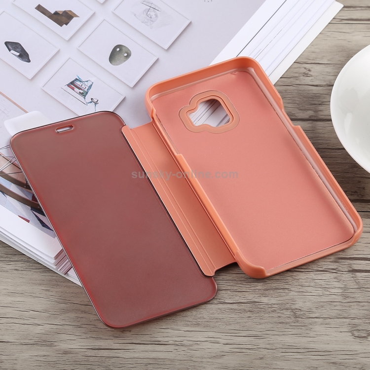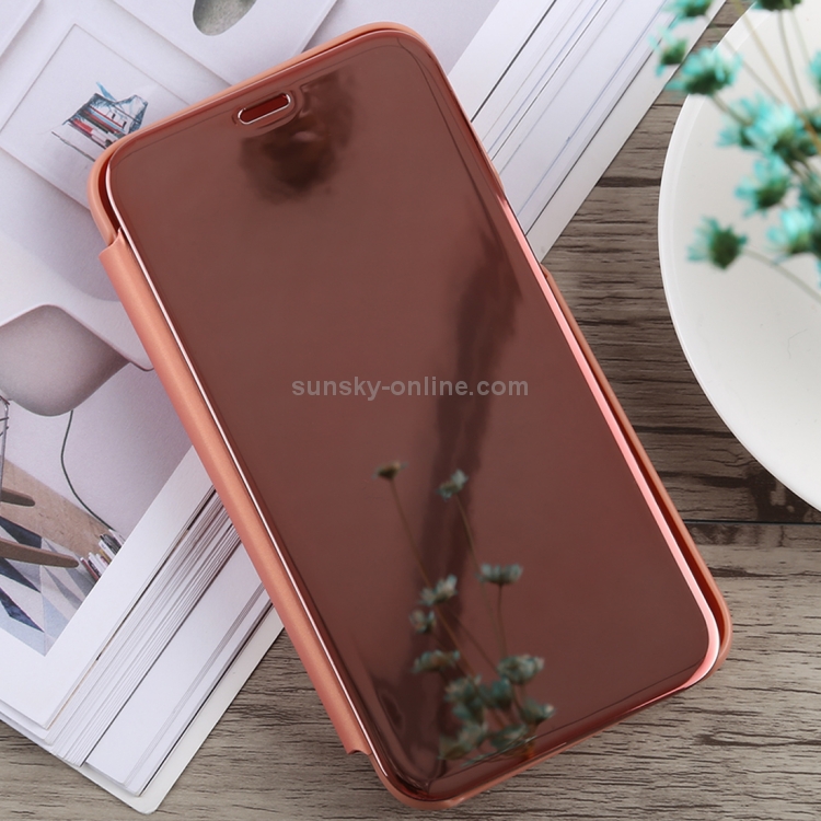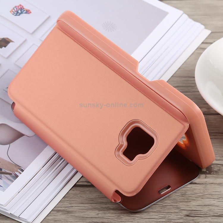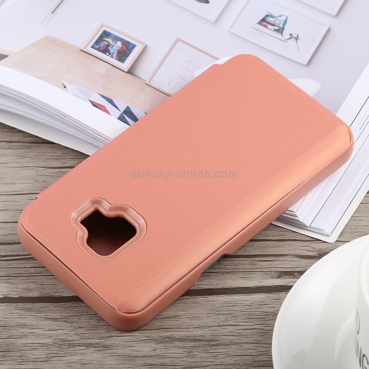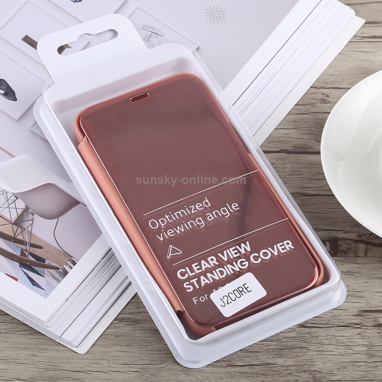 Funda Abatible Horizontal con Espejo Galvanizado para Galaxy J2 Core con Soporte (Oro Rosa)