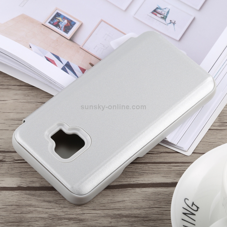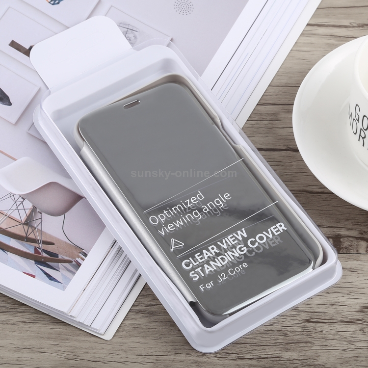 Funda Abatible Horizontal con Espejo Galvanizado para Galaxy J2 Core con Soporte (Plateado)