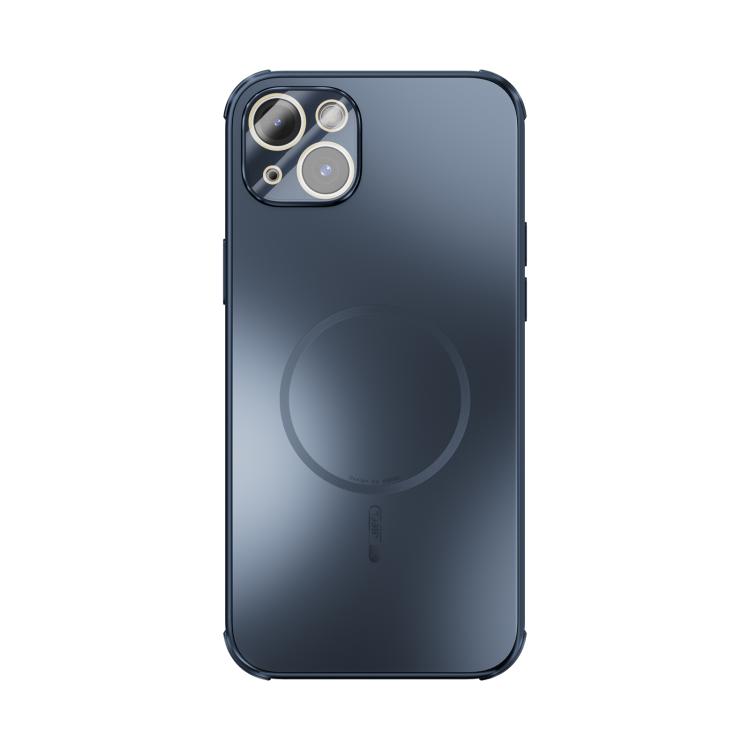 Funda ABEEL MagSafe esmerilada con disipación de calor y película para lente para iPhone 14 Plus (azul oscuro)
