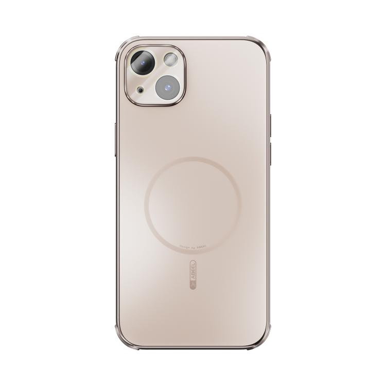 Funda ABEEL MagSafe esmerilada con disipación de calor y película para lente para iPhone 14 Plus (oro rosa)