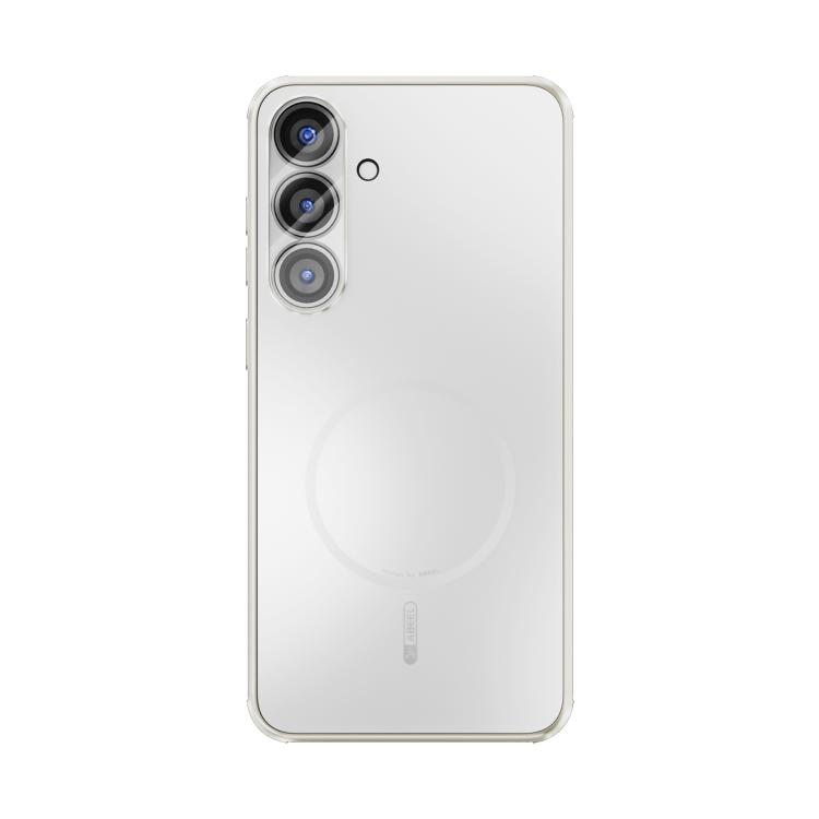 Funda ABEEL MagSafe esmerilada con disipación de calor y película para lente para Samsung Galaxy S25 5G (blanca)