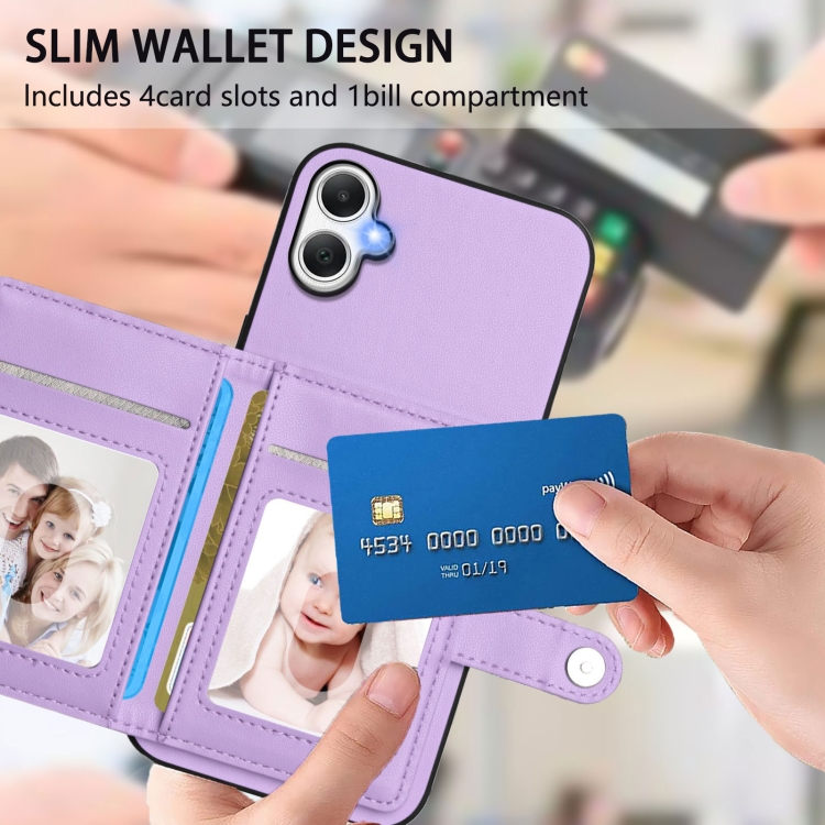 Funda Antirrobo Rfid Samsung Galaxy A06 4G con Botón y Tarjetero (Morado)