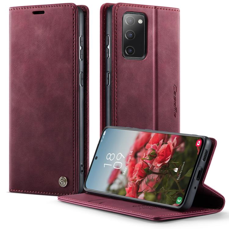 Funda CaseMe 033 para Samsung Galaxy S20 FE, forro de piel de becerro, microfibra, con bloqueo RFID (roja)