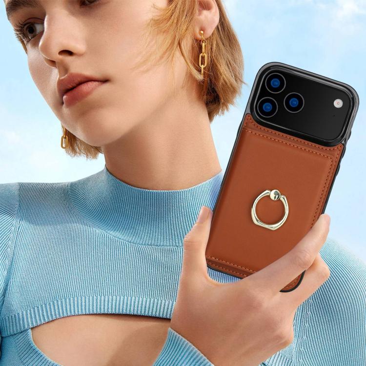 Funda con anillo antirrobo RFID para iPhone 17 Pro (marrón)
