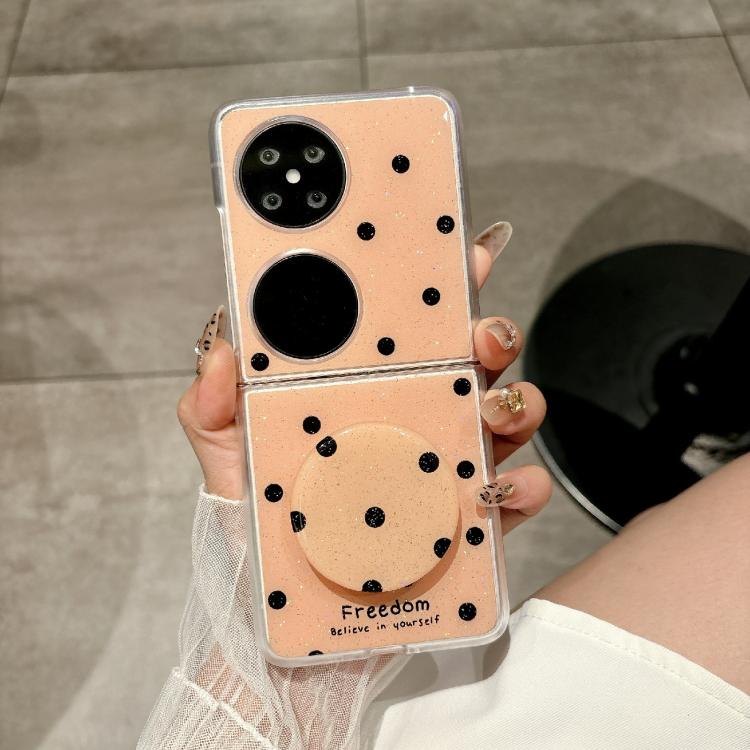 Funda con estampado de puntos brillantes para Huawei Pocket 2 con soporte (dorada)