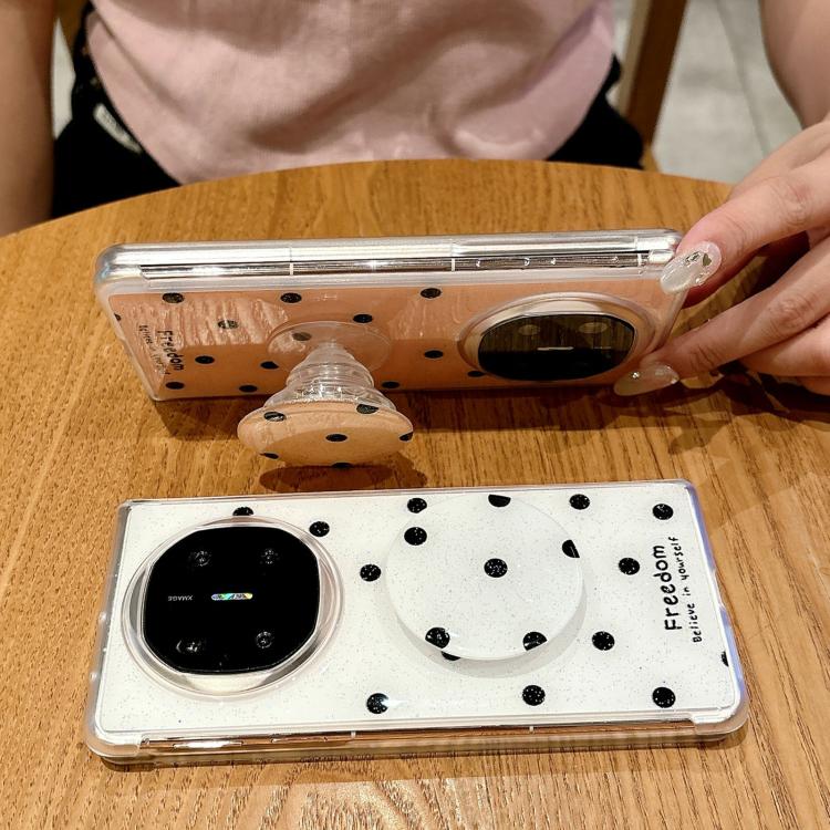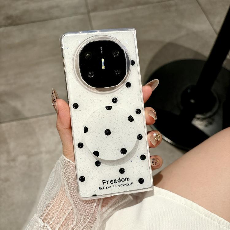 Funda con estampado de puntos brillantes y soporte para Huawei Mate X6 (blanca)