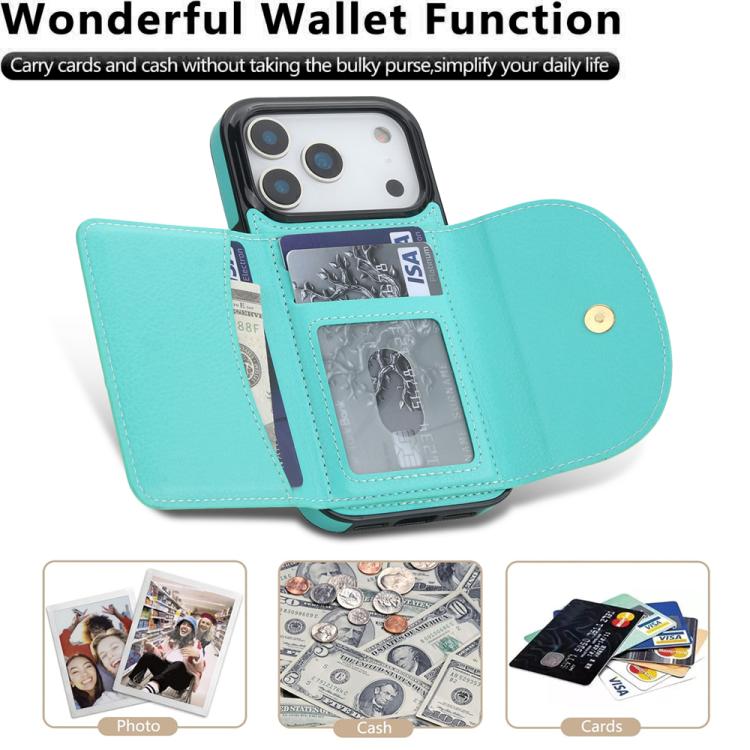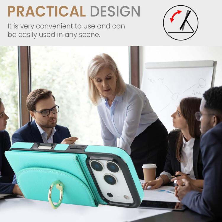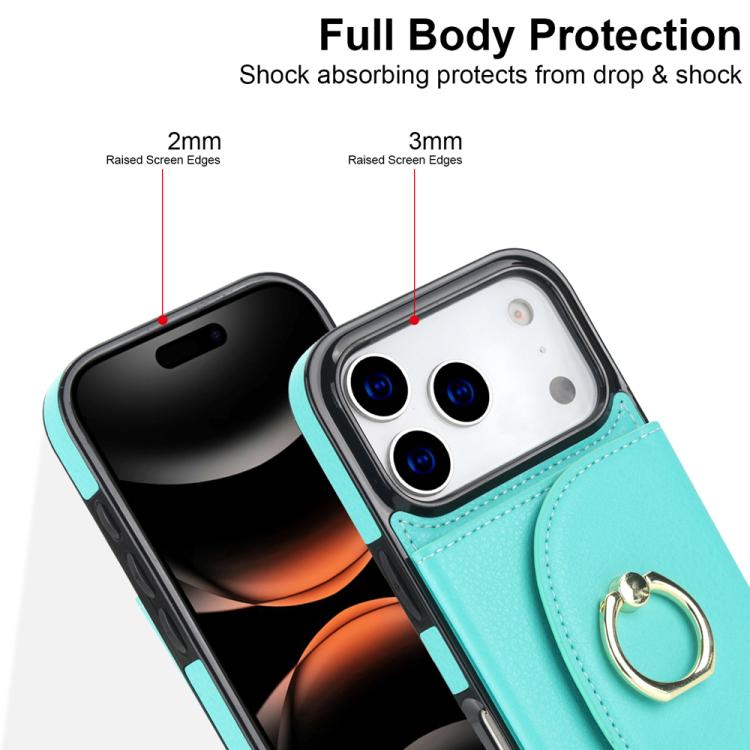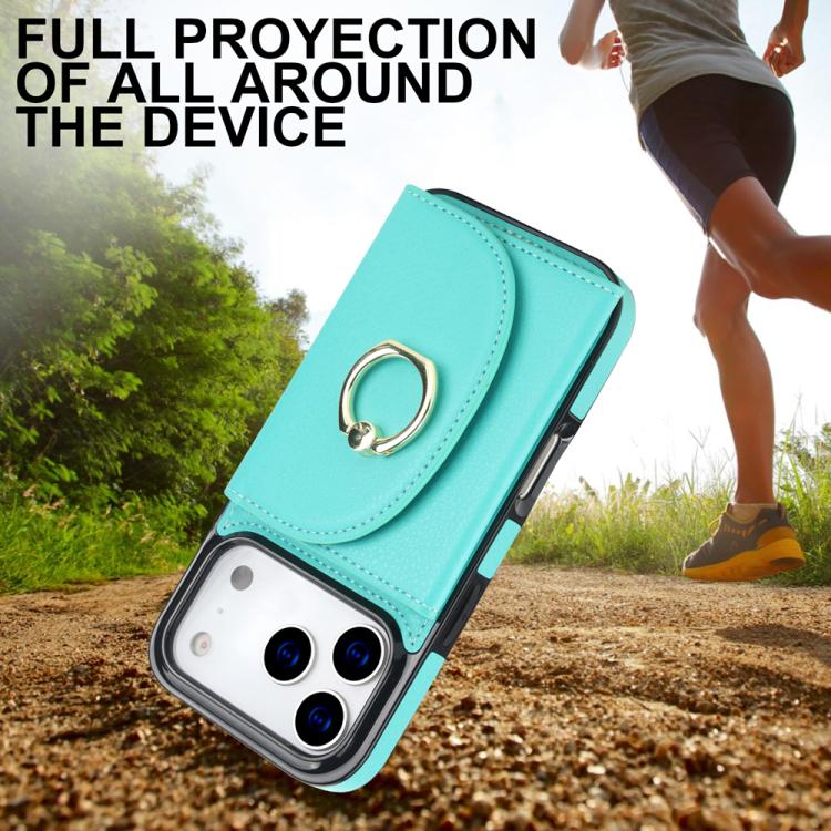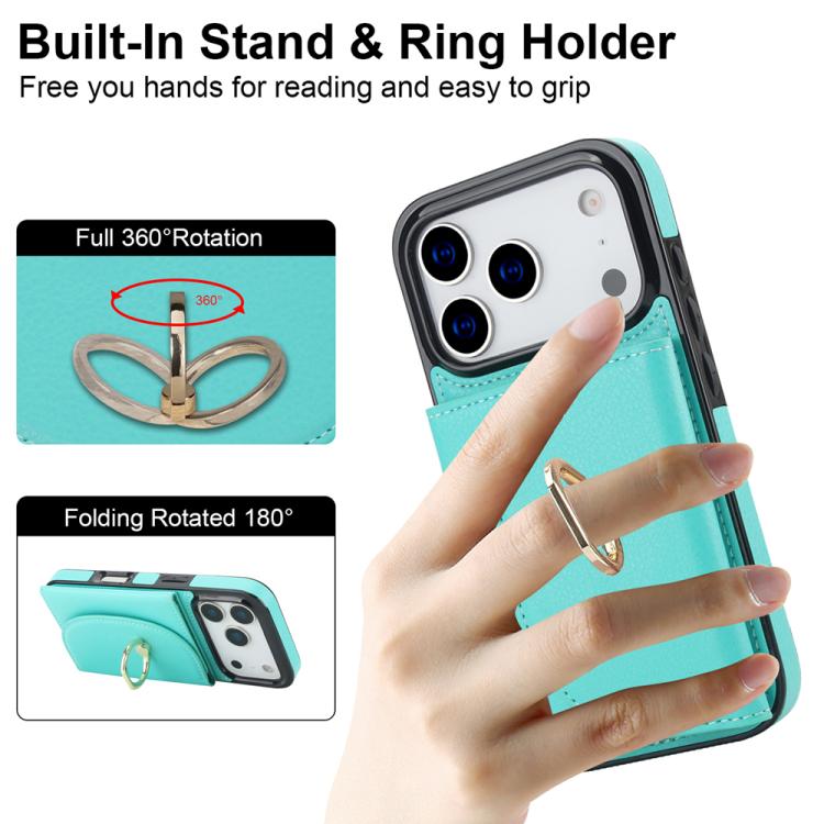 Funda con tarjetero y anillo para iPhone 17 Pro, con tacto de piel (verde)