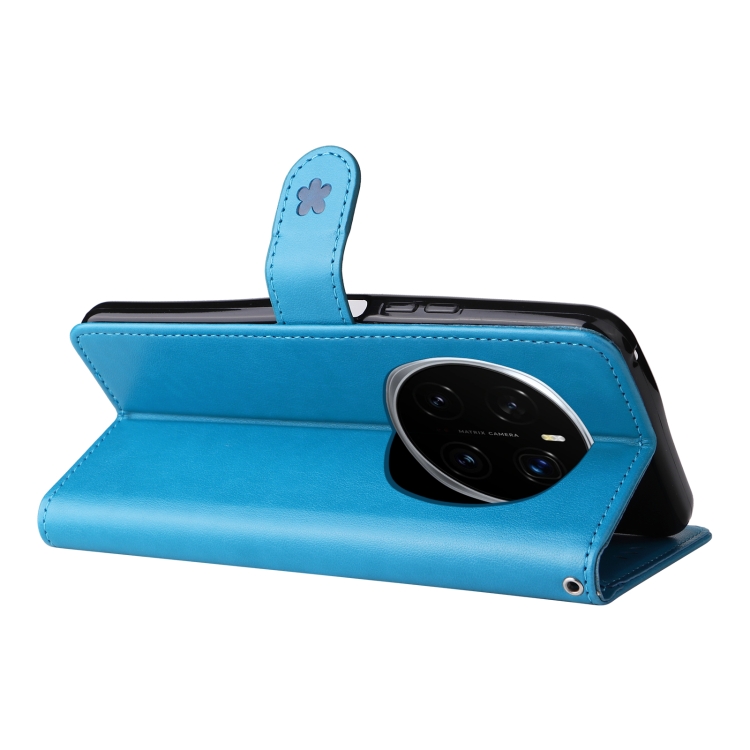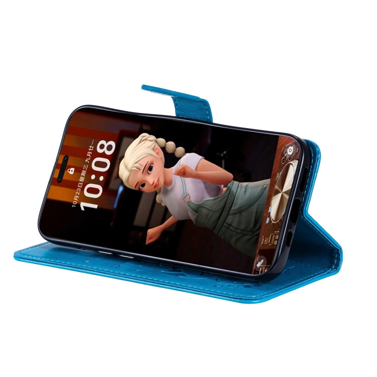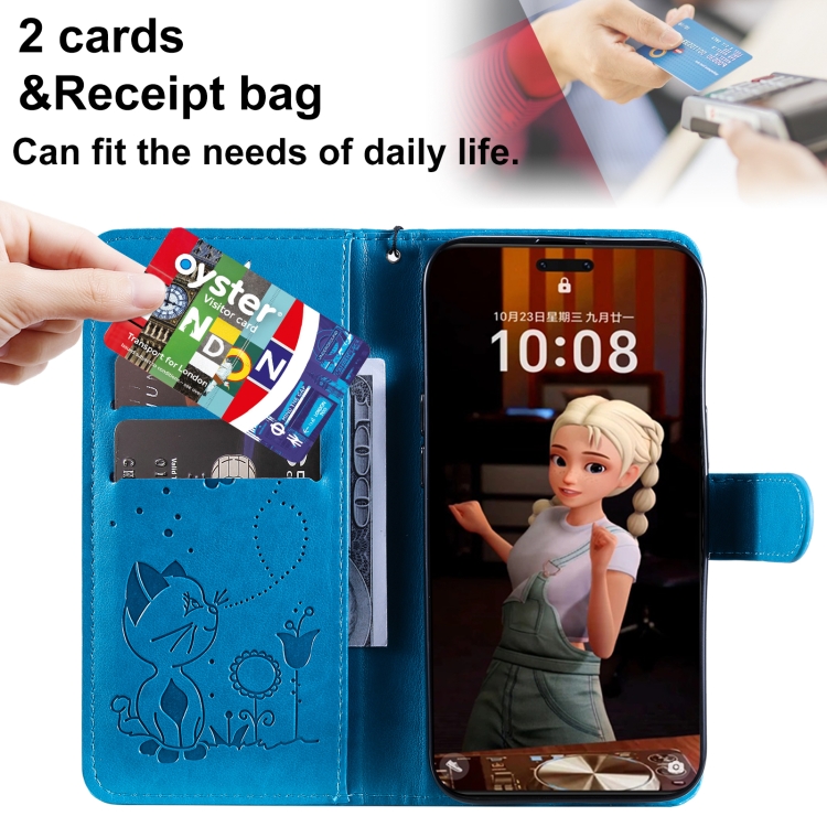 Funda de Cuero a Prueba de Golpes para Honor Magic7 Pro (Azul) con Estampado de Abeja y Gato
