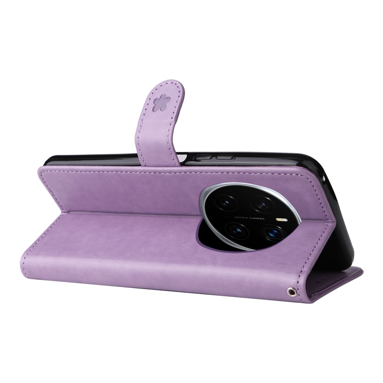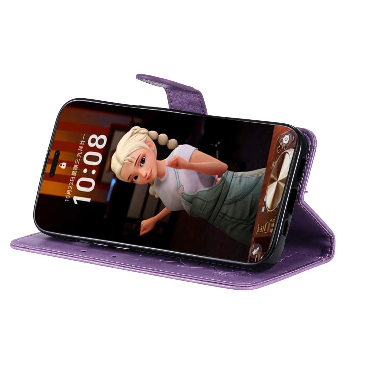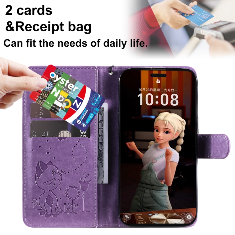 Funda de Cuero a Prueba de Golpes para Honor Magic7 Pro (Morado) con Estampado de Abeja y Gato
