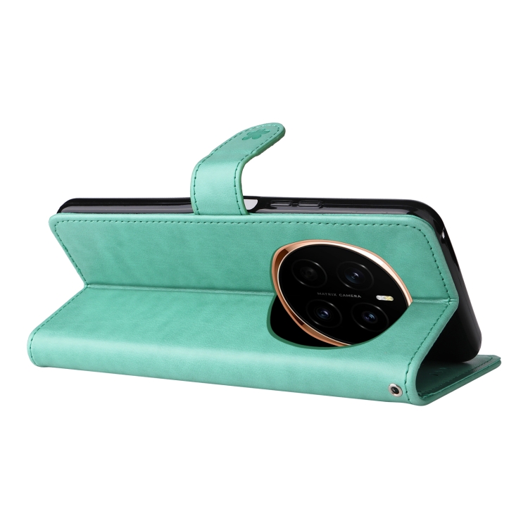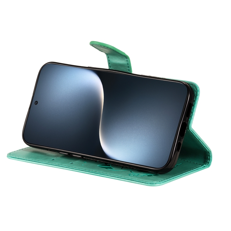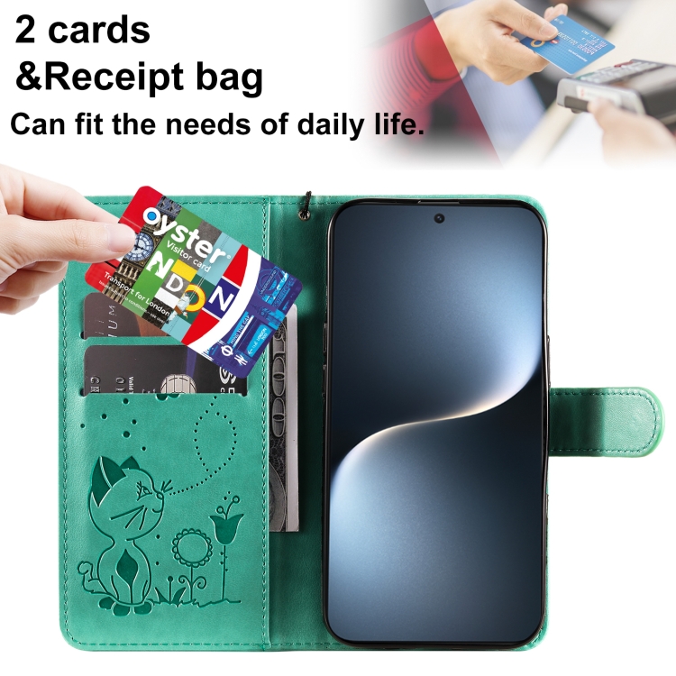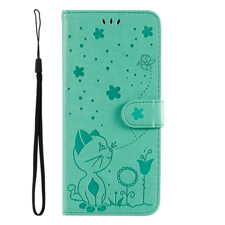 Funda de Cuero a Prueba de Golpes para Honor Magic7 (Verde) con Estampado de Abeja y Gato