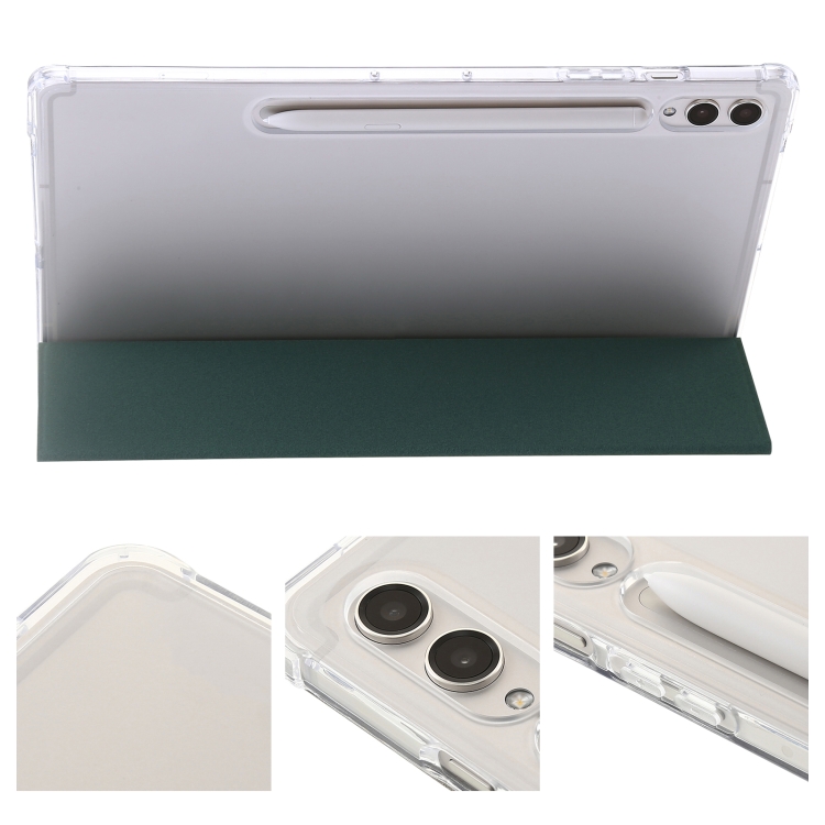 Funda para Tablet Samsung Galaxy Tab S10 Ultra de Cuero Acrílico Transparente 3 Pliegues (Verde Oscuro)