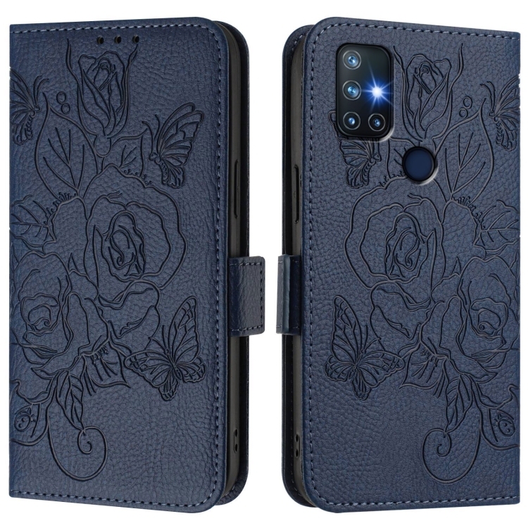 Funda de Cuero Antirrobo con RFID para OnePlus Nord N10 5G con Relieve (Azul Oscuro)