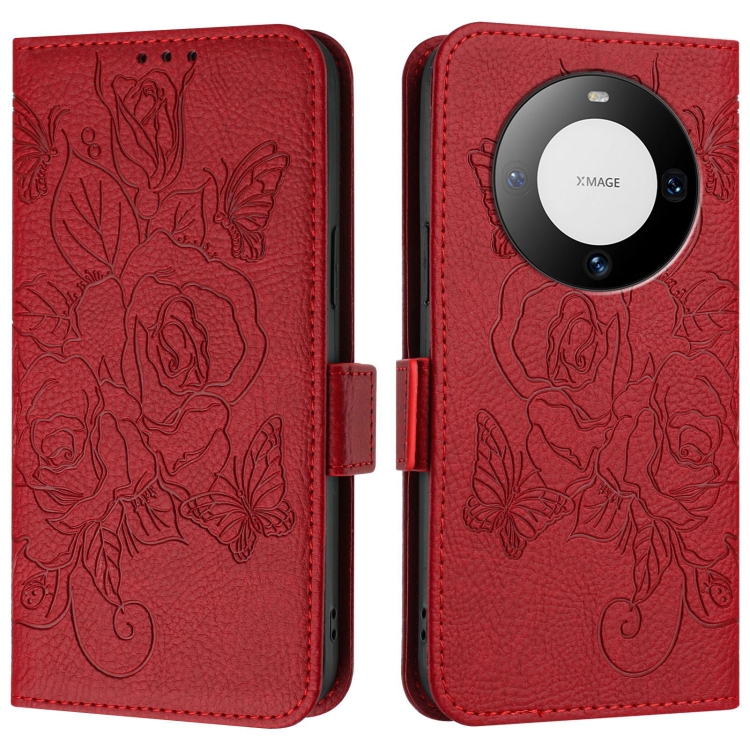 Funda de Cuero Antirrobo con RFID para Huawei Mate 60 (Rojo) Diseño en Relieve