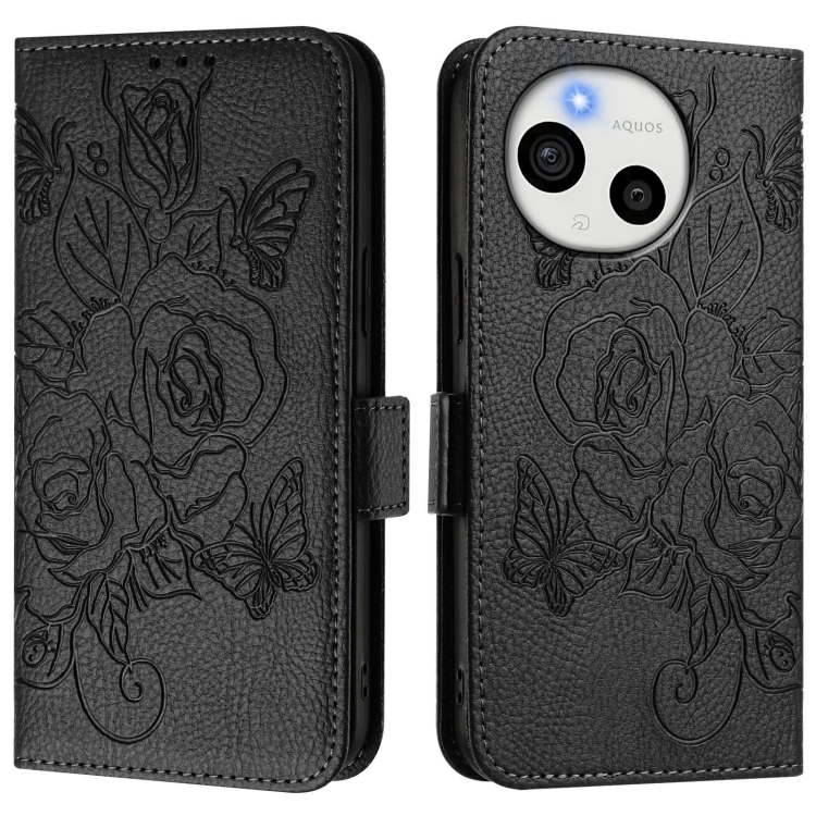 Funda Cuero Antirrobo Rfid Sharp Aquos Sense9 Diseño Rosa En Relieve (Negra)