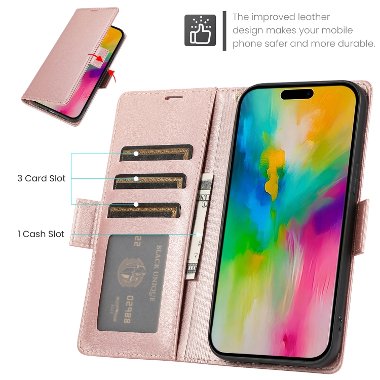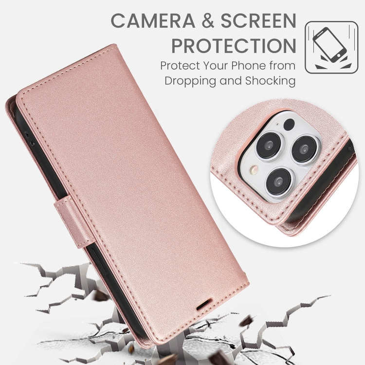 Funda de Cuero Antirrobo Rfid con Hebilla Lateral para iPhone 16 Pro Max (Oro Rosa)