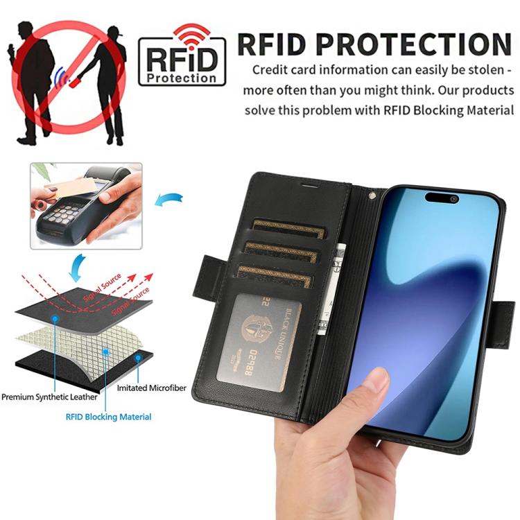 7. Función de bloqueo RFID: Diseñado con tecnología de bloqueo RFID que puede bloquear las señales RFID y proteger la información personal de escáneres no autorizados.
