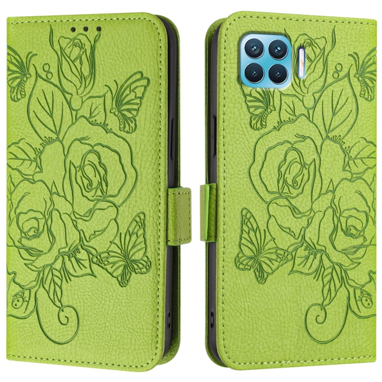 Funda de Cuero Antirrobo Rfid con Relieve En Rosa para Oppo Reno4 Lite/Reno4 F (Verde)