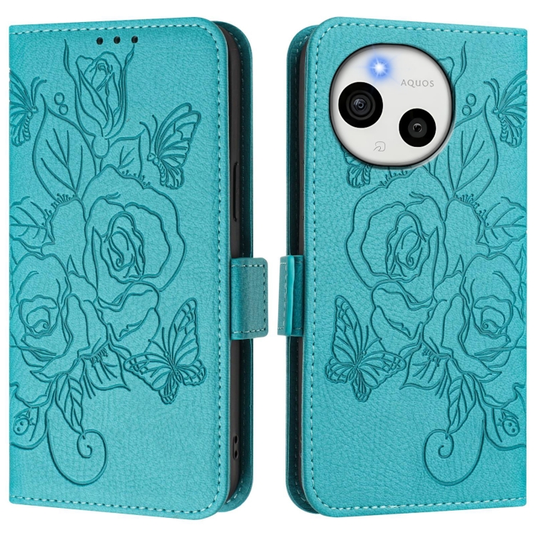 Funda Cuero Antirrobo RFID Relieve para Sharp Aquos Sense9 Plus (Azul Claro)