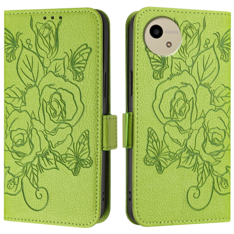 Funda de Cuero Antirrobo RFID con Relieve para Sharp Aquos Wish4 (Verde)