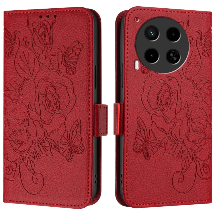 Funda de Cuero Antirrobo RFID con Relieve para Tecno Camon 30 5G/4G (Rojo)