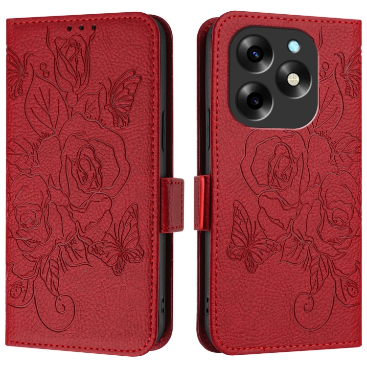 Funda de Cuero Antirrobo RFID con Relieve para Teléfono Itel S23+ (Rojo)