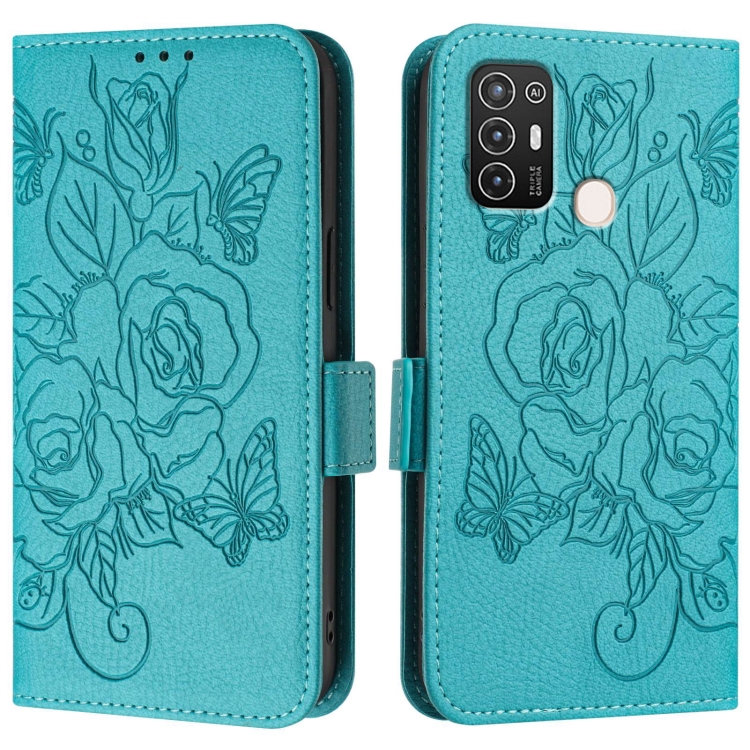 Funda de Cuero Antirrobo RFID con Relieve para ZTE Blade A52 (Azul Claro)
