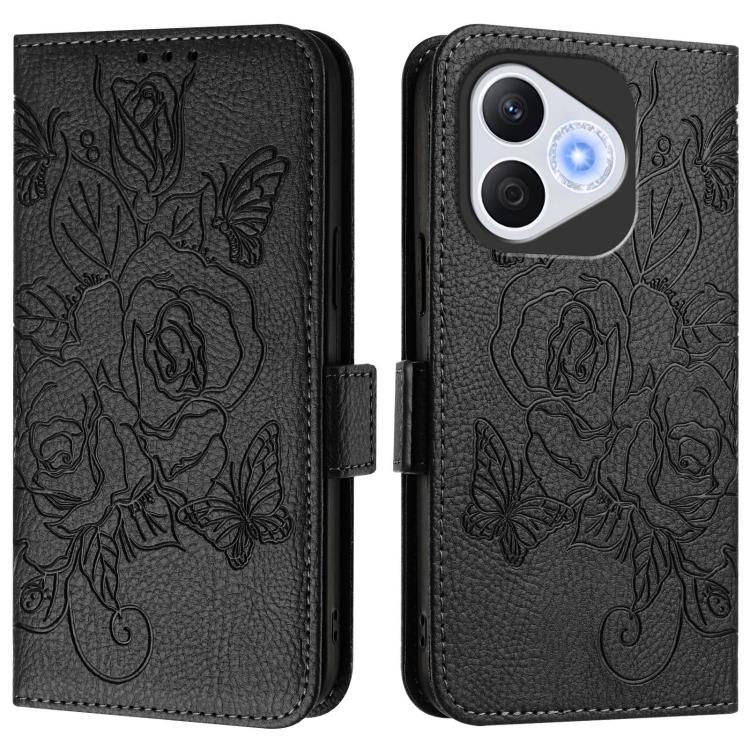 Funda de Cuero Antirrobo RFID con Relieve Rosa para Honor 400 Lite (Negra)