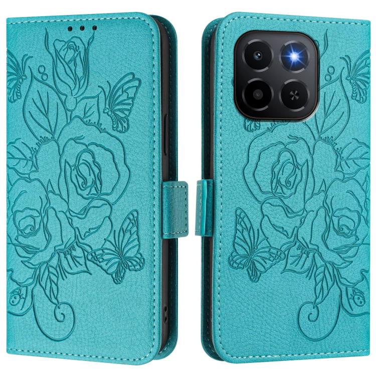 Funda de cuero antirrobo RFID con relieve rosa para Honor X6c 4G (azul claro)