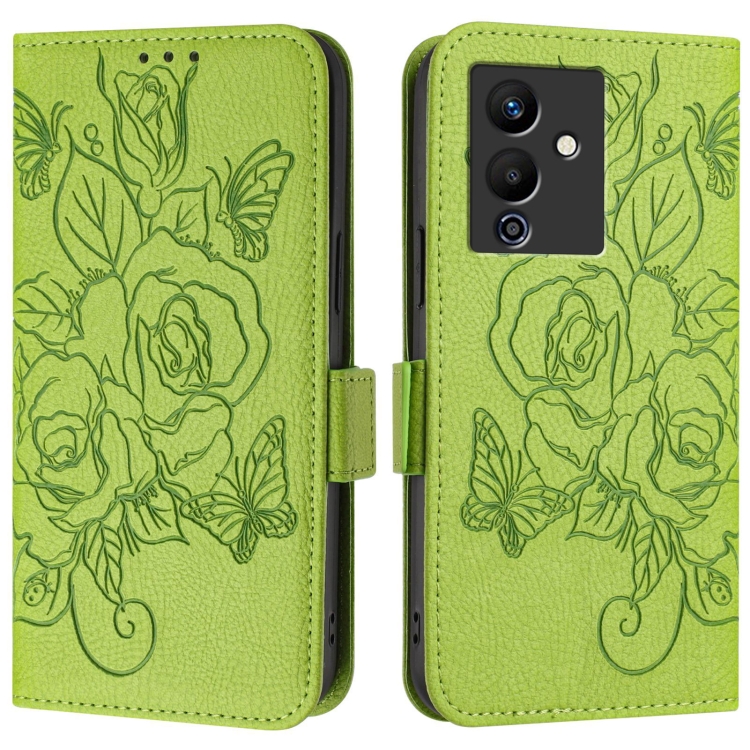 Funda de Cuero Antirrobo RFID con Relieve Rosa para Infinix Note 12 Pro 5G y Note 12 5G (Verde)