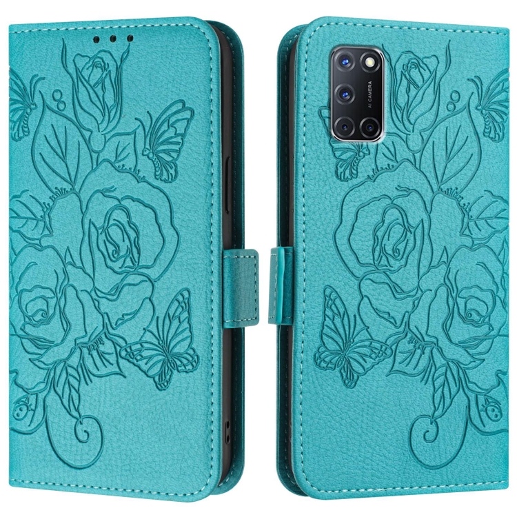 Funda de Cuero Antirrobo Rfid con Relieve Rosa para Oppo A72/A52/A92 4G (Azul Claro)