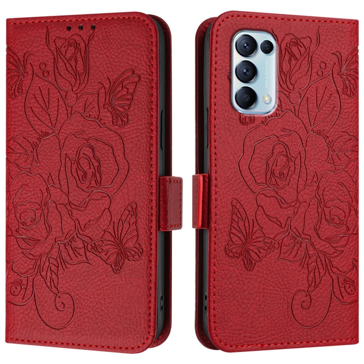 Funda de Cuero Antirrobo Rfid con Relieve Rosa para Oppo Reno5 5G/4G/Find X3 Lite (Rojo)