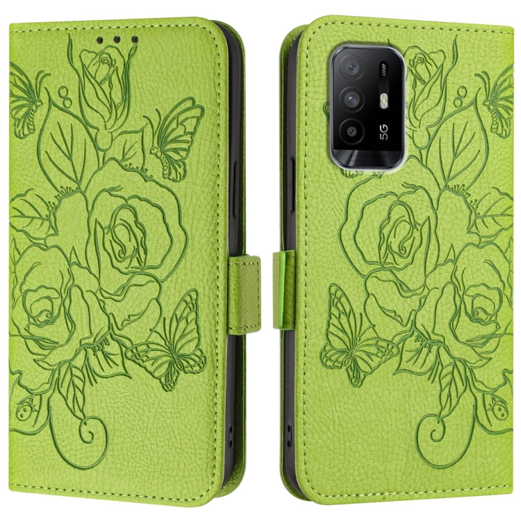 Funda de Cuero Antirrobo Rfid con Relieve Rosa para Oppo Reno6 Lite (Verde)