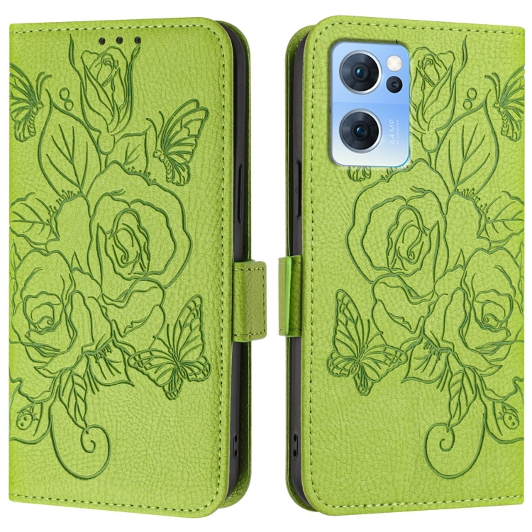Funda de Cuero Antirrobo Rfid con Relieve Rosa para Oppo Reno7 5G Global/Find X5 Lite (Verde)
