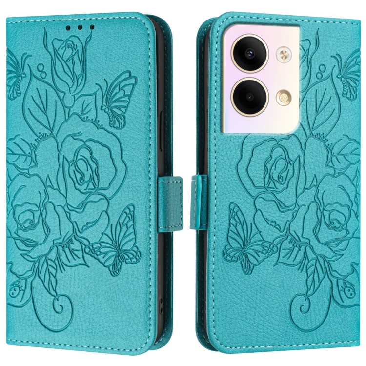 Funda de Cuero Antirrobo Rfid con Relieve Rosa para Oppo Reno9 5G/Reno9 Pro 5G (Azul Claro)