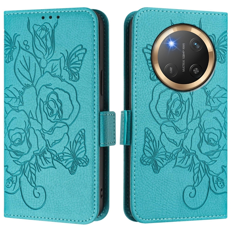 Funda de Cuero Antirrobo RFID con Relieve Rosa para Honor X9C 5G (Azul Claro)
