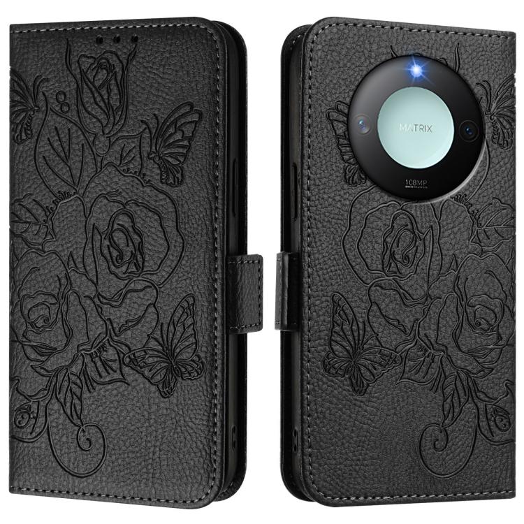 Funda de Cuero Antirrobo RFID con Relieve Rosa para Honor X9C 5G (Negro)