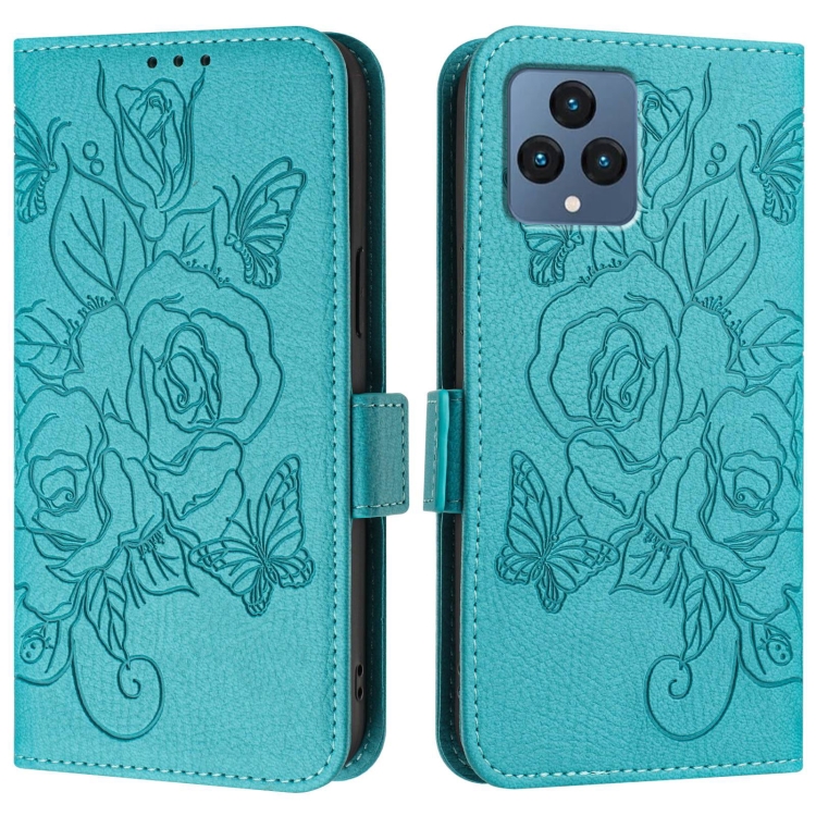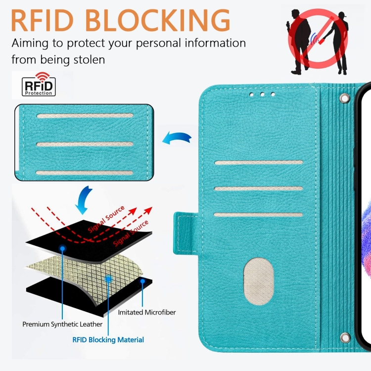Funda de Cuero Antirrobo RFID con Relieve Rosa para Teléfono T-Mobile Revvl 6/6X 5G (Azul Claro)