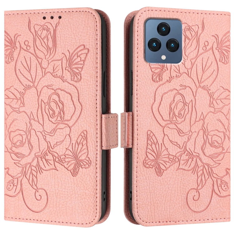 Funda Cuero Antirrobo RFID T-Mobile Revvl 6/6X 5G con Relieve (Rosa)
