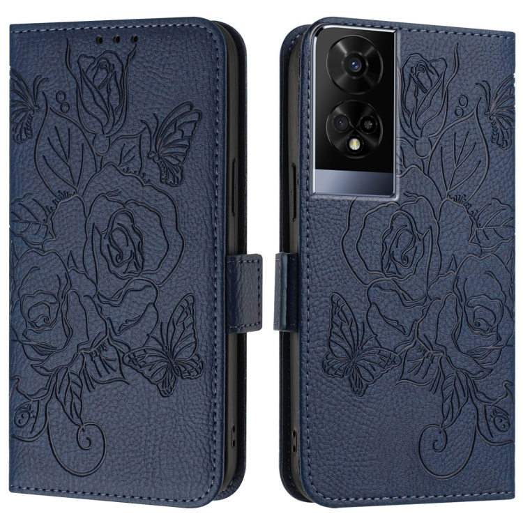 Funda de Cuero Antirrobo RFID con Relieve Rosa para TCL 50 Xe 5G (Azul Oscuro)