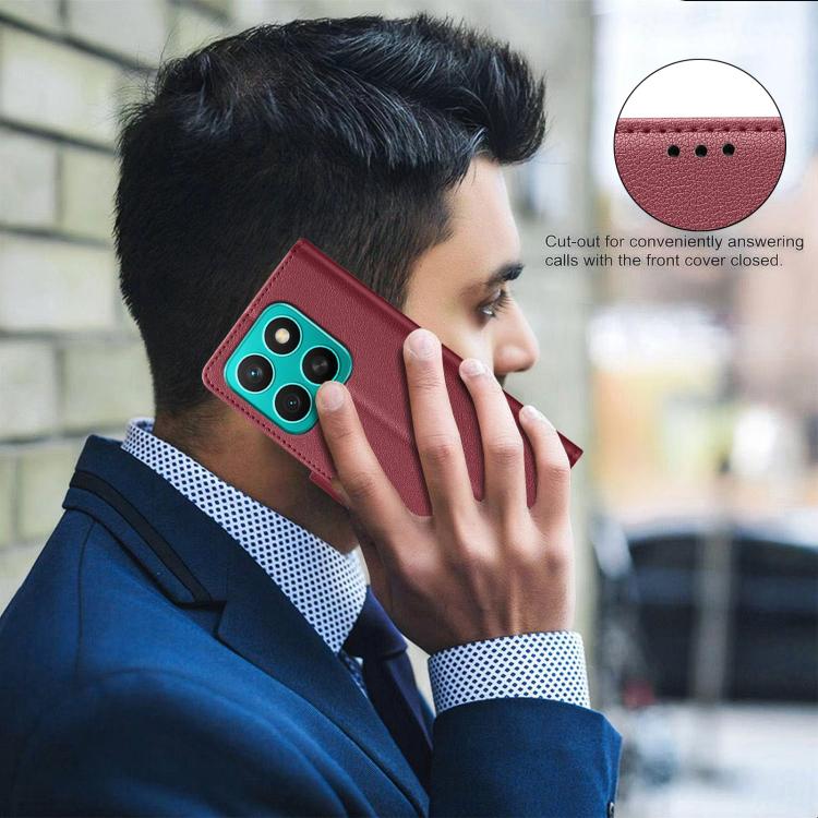 Funda de Cuero Antirrobo RFID para Teléfono Honor X8C 4G (Rojo) con Textura de Lichi