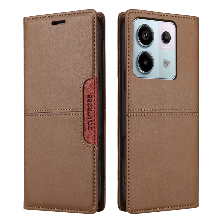 Funda de Cuero Antirrobo Rfid Gqutrobe G01 para Redmi Note 13 Pro 5G (Marrón)