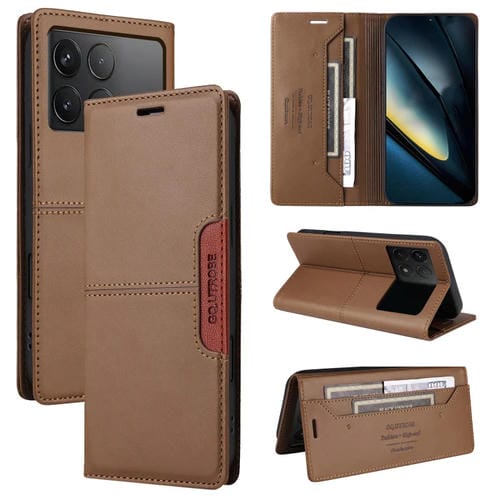 Funda de Cuero Antirrobo Rfid Gqutrobe G01 para Xiaomi Poco F6 Pro (Marrón)