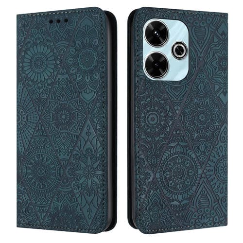 Funda de Cuero con Adsorción En Relieve Étnico para Xiaomi Redmi 13 4G (Azul)