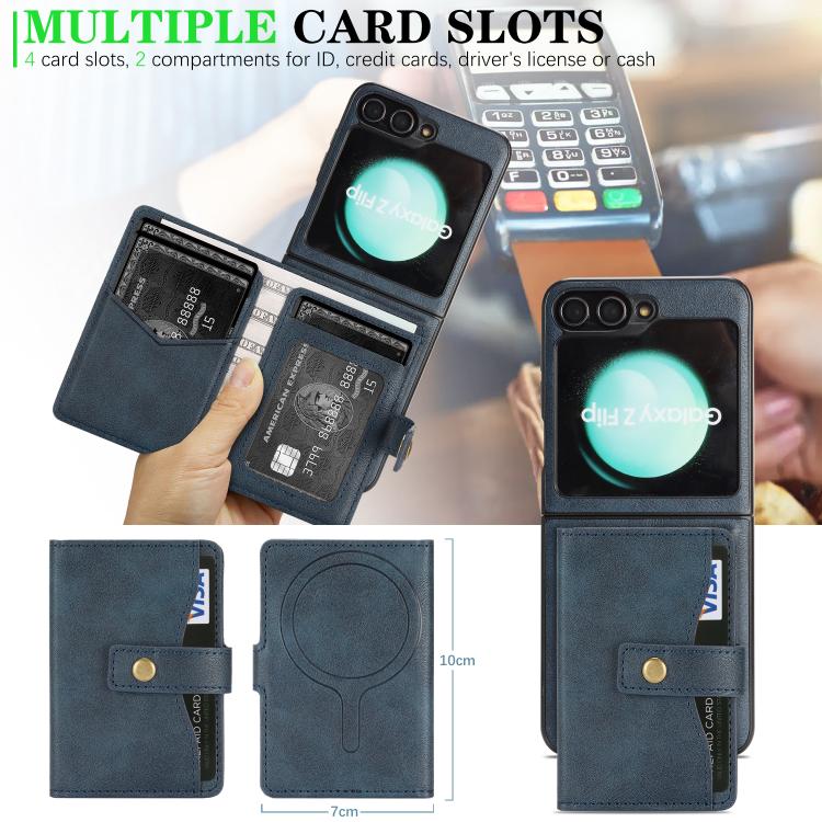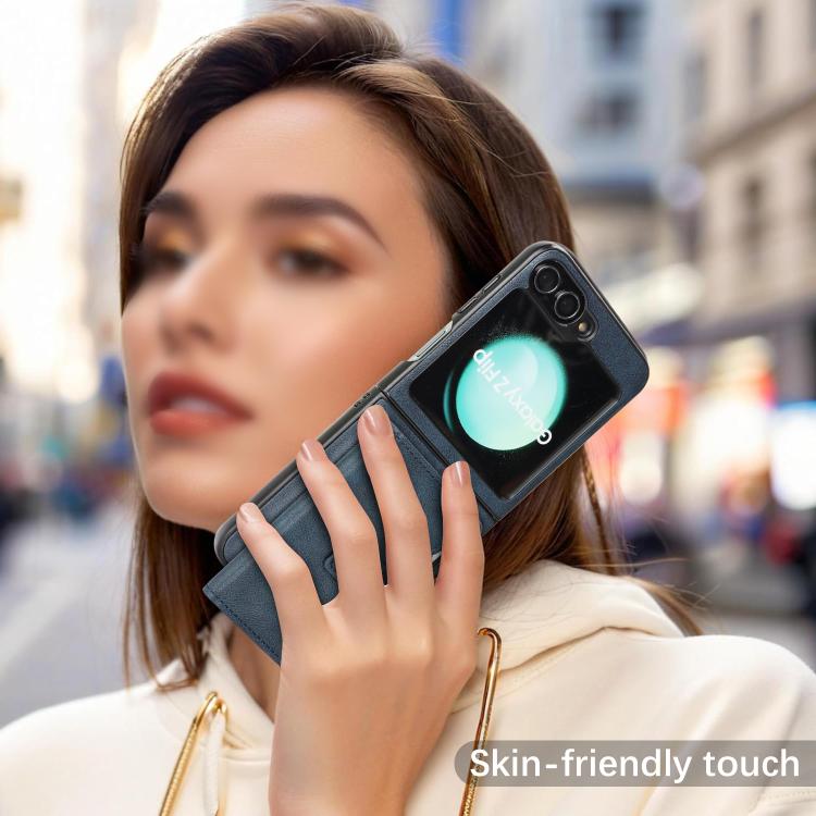 Funda de cuero con anillo MagSafe para Samsung Galaxy Z Flip6 (azul)