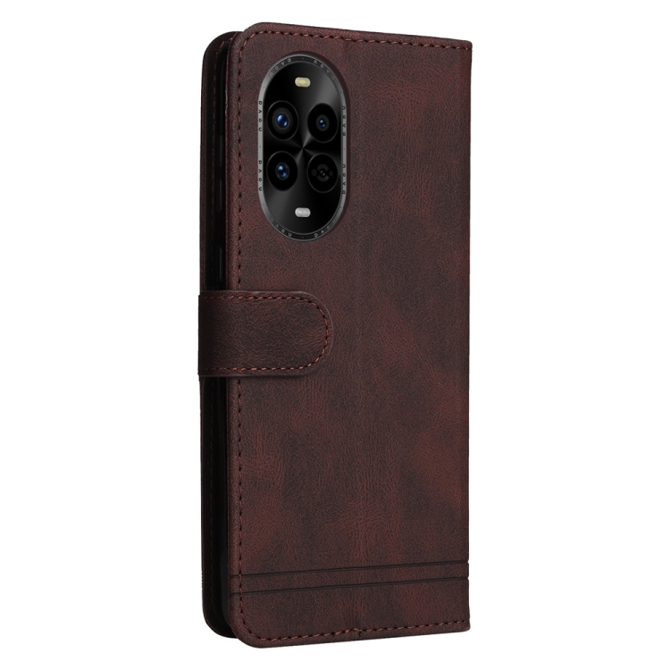 Funda de Cuero para Huawei Nova 13 Pro con Botones de Metal y Diseño Árbol de la Vida (Marrón)